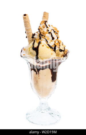 Glace vanille, sauce Chocolat maison, Chantilly et cigarette Russe.